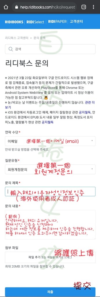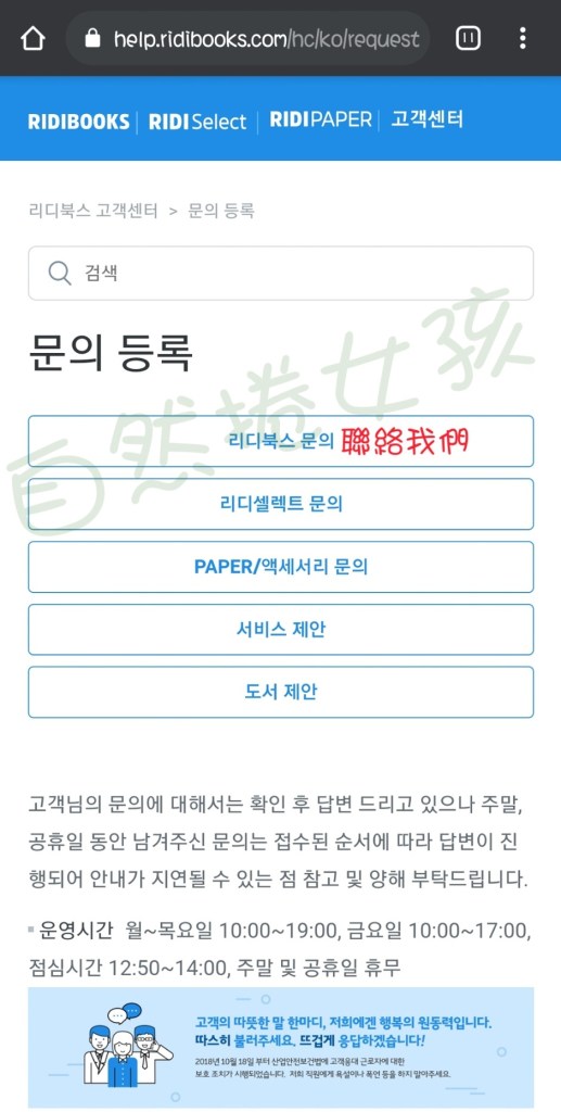 Step3. 跳轉至頁面後選擇第一個리디북스 무의(聯絡我們)***有變,請點擊這裡***