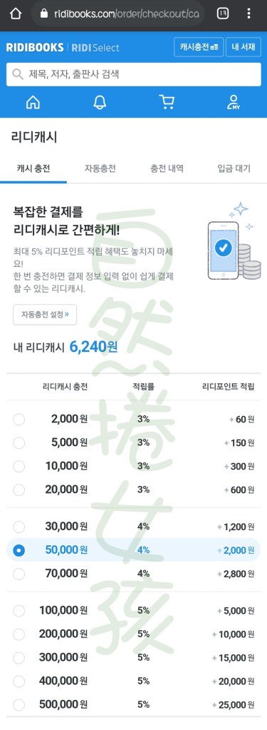 Ridibooks 每月1-3日儲值,贈送points雙倍送。