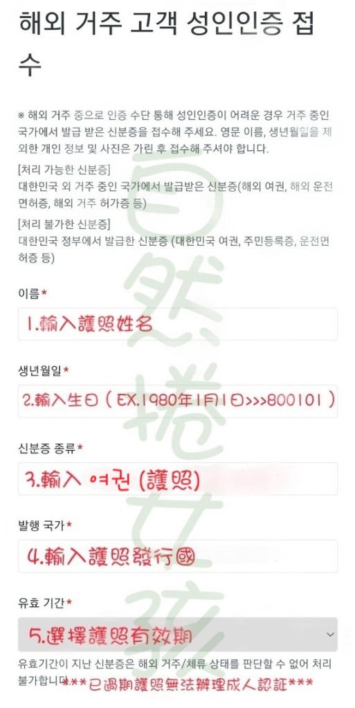 姓名我用護照的羅法拼音,身分證種類輸入韓文的海外護照