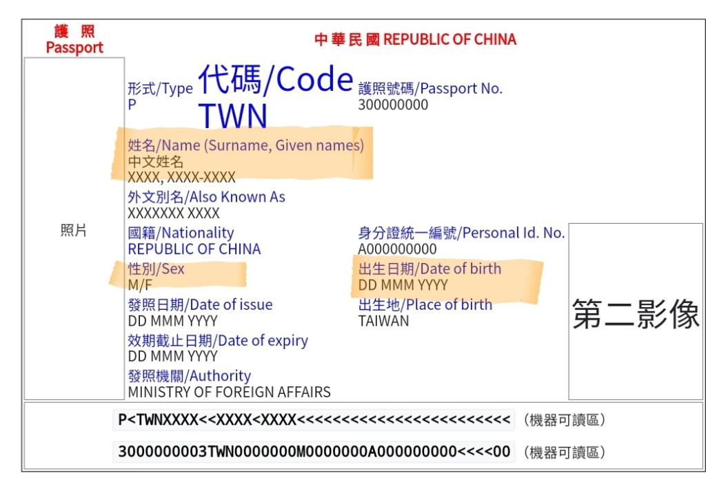 護照只需要留姓名、生日及性別即可,其餘資料可以模糊處理。