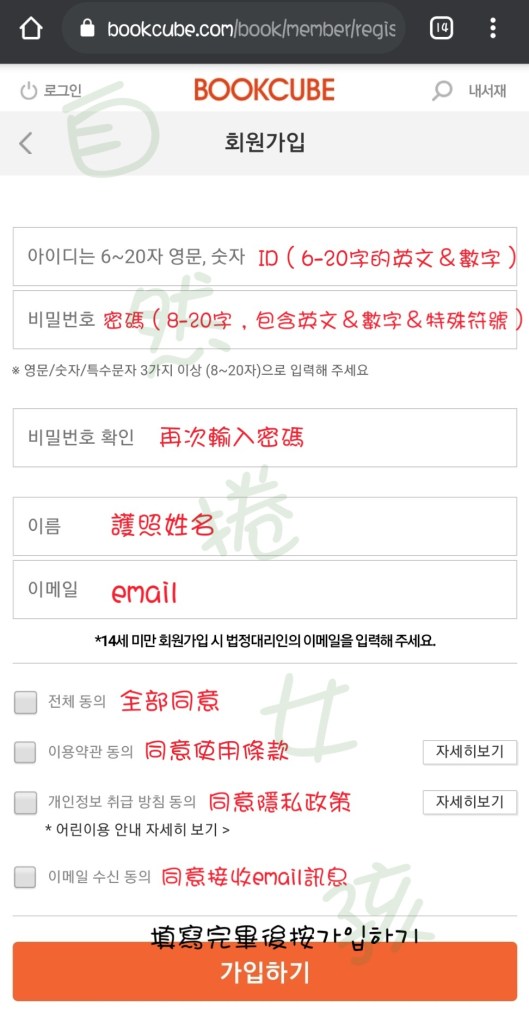 Step4. 填寫以下資料,完成後按下가입하기即完成註冊。