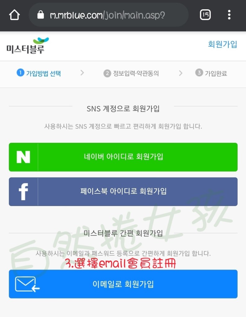 Step4. 填寫下方資料,完成後按下가입하기 。