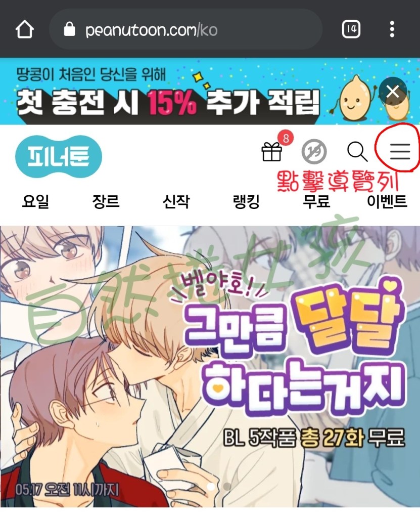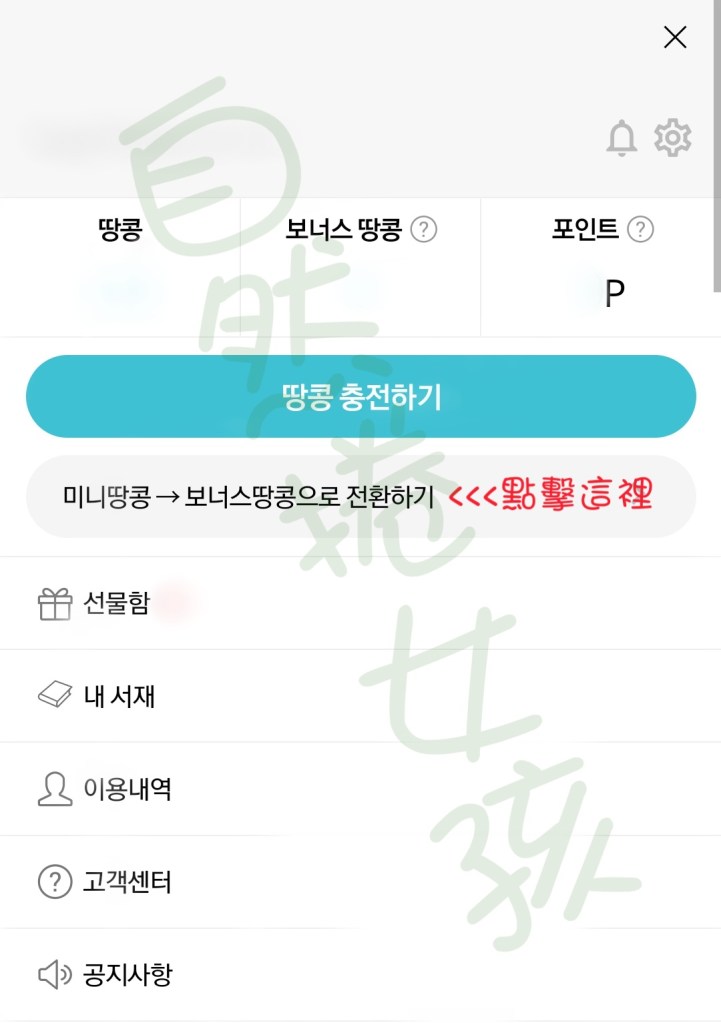 Step1. 點擊땅콩 충전하기