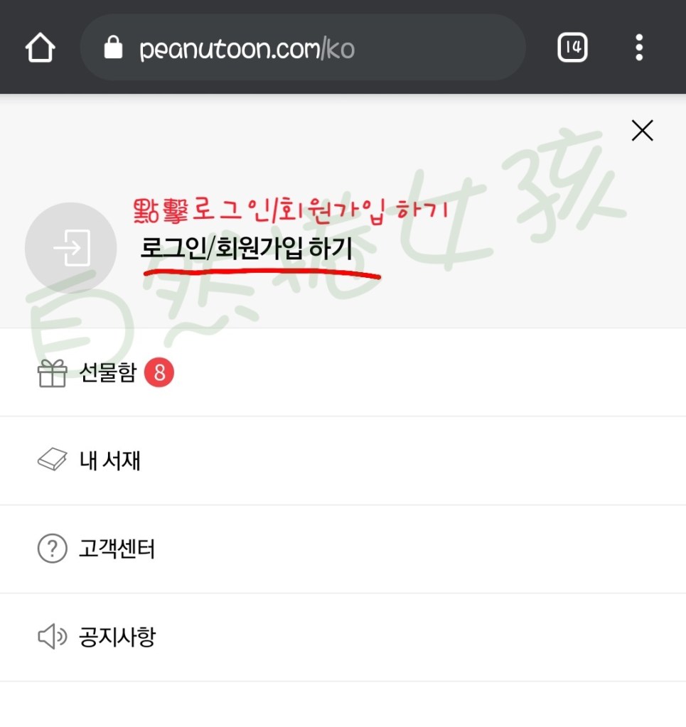 Step2. 點擊로그인/회원가입 하기 (登入/會員加入)