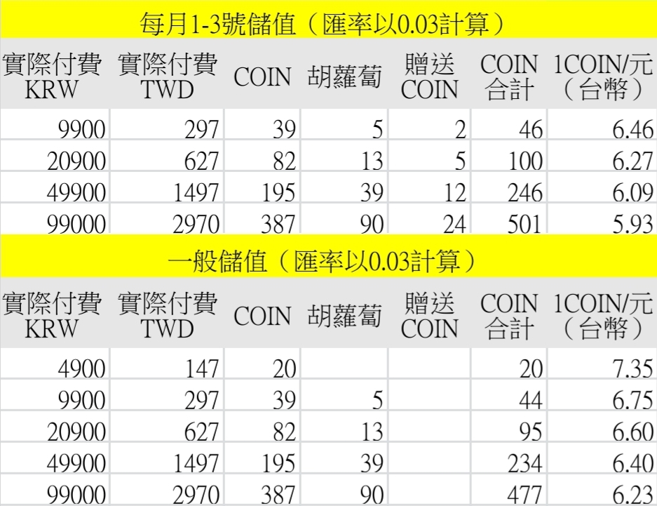 **儲值方案比較(匯率以0.03計算)